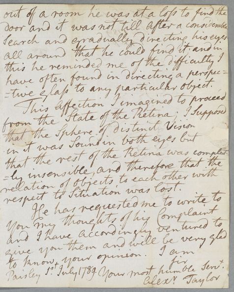 | Summary | Letter from Alexander Taylor, concerning the case of an unnamed male patient with an eye complaint. |