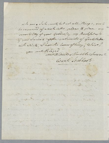 | Summary | Letter from Count Lockhart on his own case, with 'hearty thanks for having I may safely say saved me from the jaws of death'. |