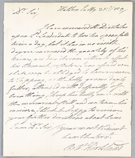 [ID:3564] From: Mr Robert Kirkland / To: Dr William Cullen (Professor Cullen) / Regarding: Earl James Maitland (of Lauderdale; Lord Lauderdale; 7th Earl of Lauderdale) (Patient) / 31 July 1789 / (Incoming)