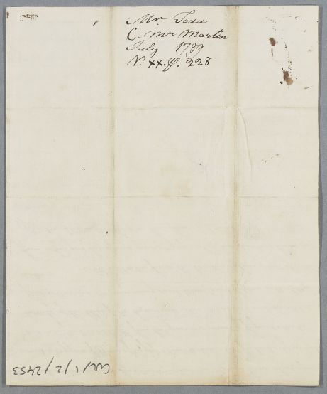 Unsigned letter. Indexing on the reverse gives the correspondent as Mr Todd but document itself is by the patient Mr Martin.