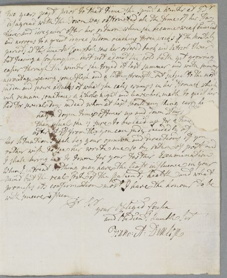 | Summary | Letter from James McGowan, concerning the case of the daughter of Mrs Frances A. Dunlop of Dunlop. Dunlop adds her own letter after McGowan's. |