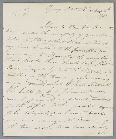 [ID:3570] From: Captain William Riddick / To: Dr William Cullen (Professor Cullen) / Regarding: Captain William Riddick (Patient) / 4 August 1789 / (Incoming)