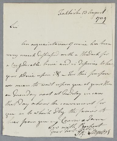 [ID:3573] From: Timothy Taylor / To: Dr William Cullen (Professor Cullen) / Regarding: Female acquaintance of Timothy Taylor (Patient) / 13 August 1789 / (Incoming)