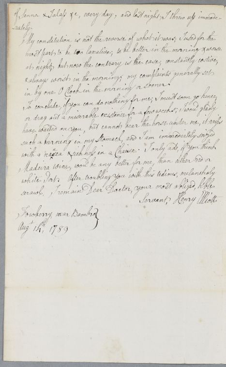 | Summary | Letter from Reverend Henry Elliott on his own case, written on the recommendation of Dr Sharp and Mr Cockayne. |