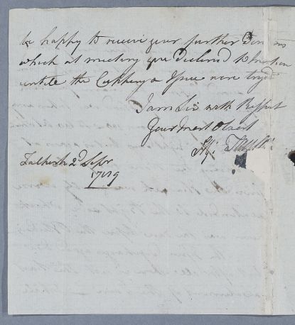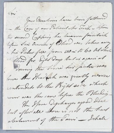 Letter from J? Taylor, concerning the case of Mr Fish, about whom he seems previously to have consulted Cullen in person, since he writes 'I shall be happy to receive your further directions which at meeting you declined to mention untill the Cupping & Issue were tryed'.