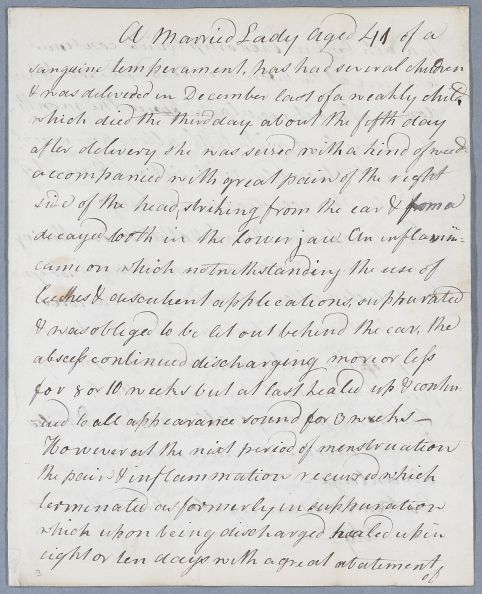 Case of 'Mr Wallace's patient' an unnamed woman of forty-one with a 'weed' (puerperal fever) and other complications after childbirth. |