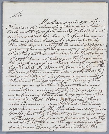 Case of 'Mrs-----', an unnamed female patient with a venereal infection, as reported by John Stoddart. |
