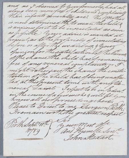 [ID:3586] From: Mr John Stodart (Stoddart) / To: Dr William Cullen (Professor Cullen) / Regarding: Mrs (Patient) / 11 September 1789 / (Incoming)