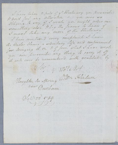[ID:3587] From: Mr William Flintum / To: Dr William Cullen (Professor Cullen) / Regarding: Mr William Flintum (Patient) / 22 September 1789 / (Incoming)