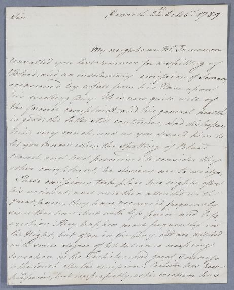 Case of Mr Jameson [Jamieson] who visited Cullen last summer (no record traced) for a chest complaint, including spitting blood and erectile disfunction after a fall from his horse; the latter in particular continues to effect him. |