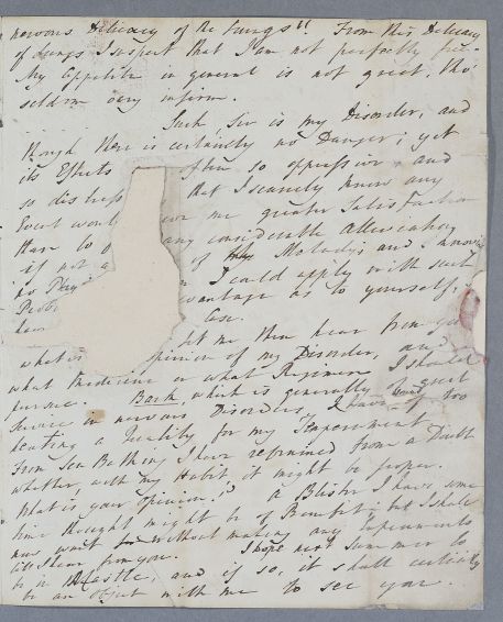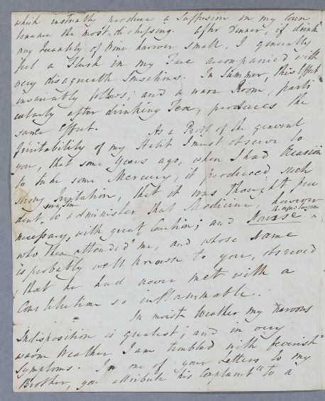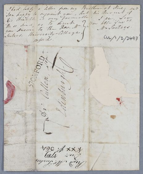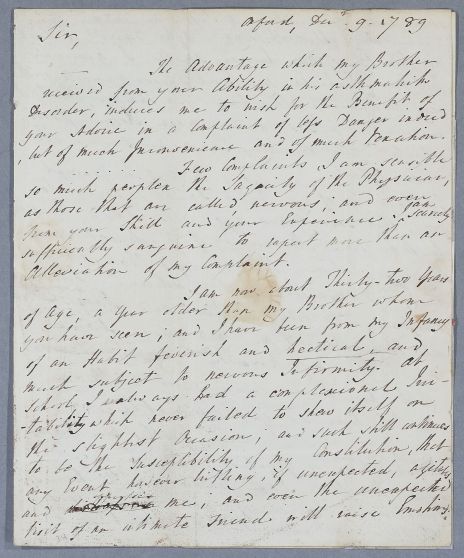 | Summary | Letter from Rev. Mr. [Matthew] Surtees of University College, Oxford, concerning his nervous disorder. He is prone to agitation and facial flushing. He hopes to visit Newcastle next summer, and from thence visit Cullen. His brother (John) had been successfully treated by Cullen for his asthmatic disorder, and has recently written to him from Nice. |