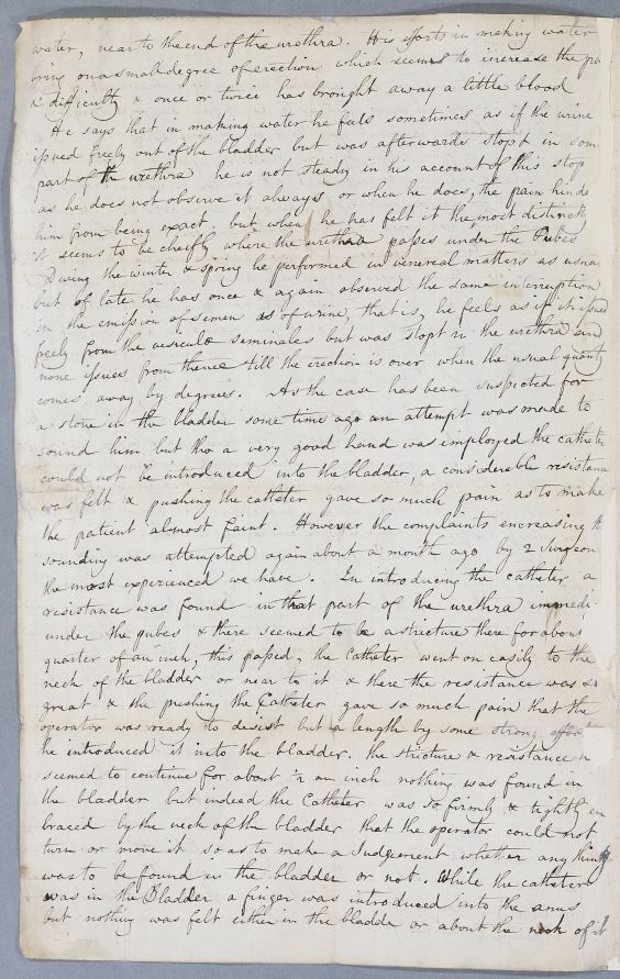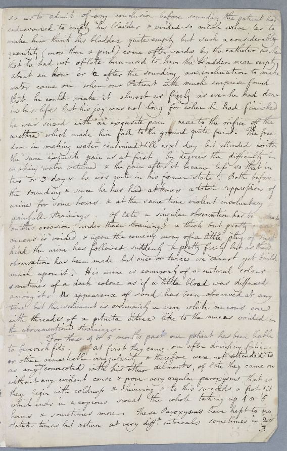 Retained copy of a case of an unnamed male patient, sent by Cullen to Dr Hunter in London. Hunter's response, Document 3655, was addressed to Cullen when he was still at Glasgow, so an inferred date of 1754-55 at the latest.