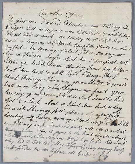 Case of [Mr Campbell?] of Carwhin who suffers from severe pains in his haunches as 'hot' feverish 'fits'. |