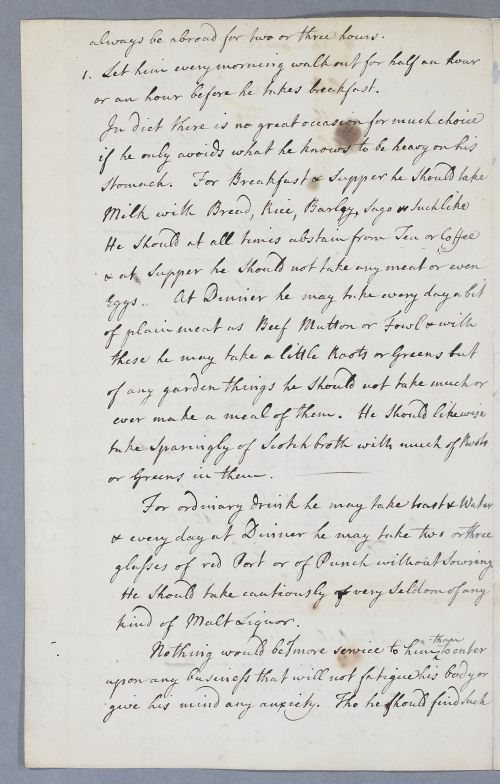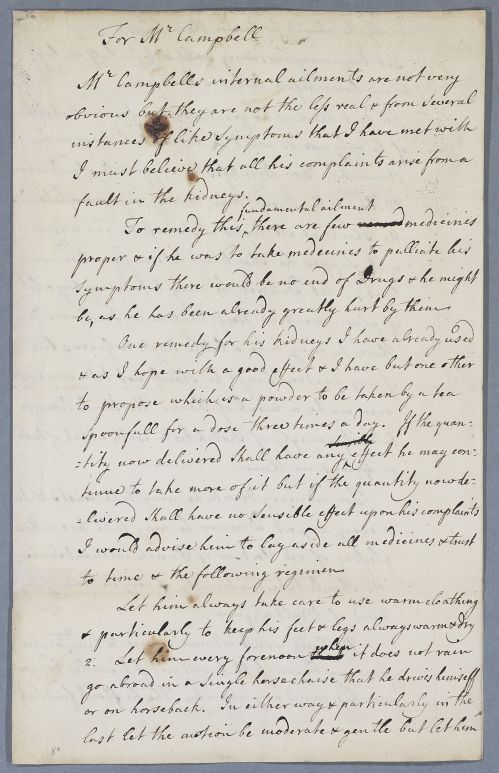Reply, in form of retained draft, of directions for Mr Campbell who has a kidney disorder. No date.