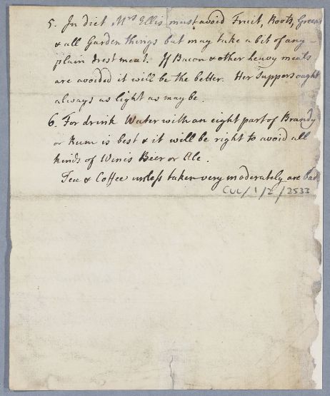 Directions for Mrs Ellis, draft by Cullen.