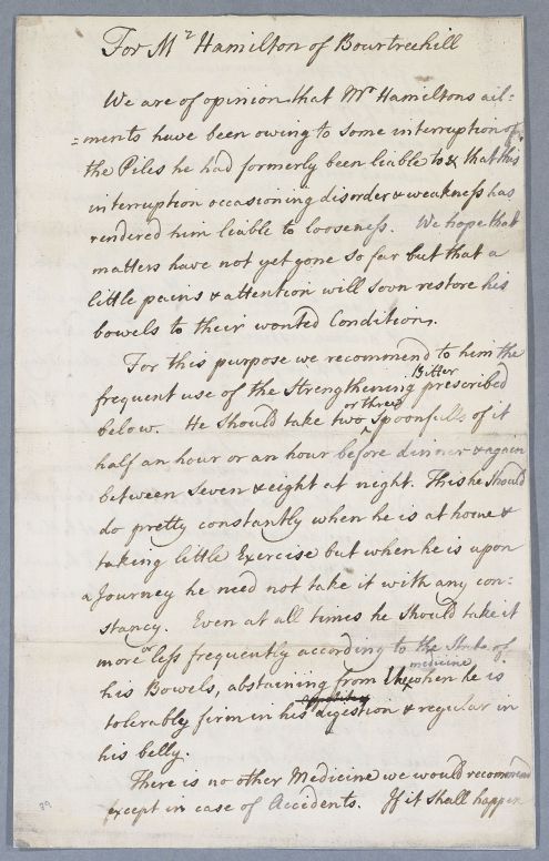 Case of Robert Hamilton of Bourtreehill whose symptoms are attributed to piles. |