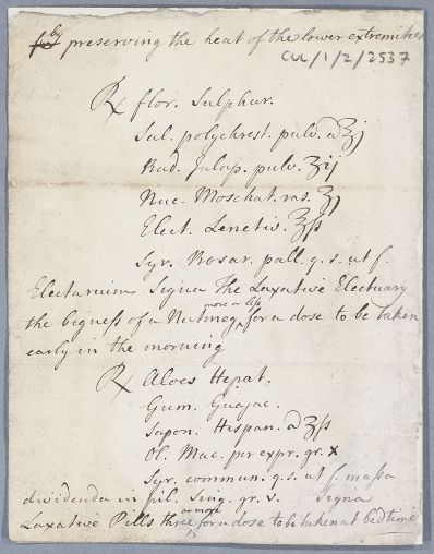 | Summary | Reply, in the form of a retained draft by Cullen, providing a regimen for the Rev. Mr Ballingall (minster at Forglen by 1780). He is advised to take Hartfell Spa Water. Cullen assumes if necessary he is able to collect bottles of this at Edinburgh which suggests that Ballingall probably consulted Cullen in person when attending the General Assembly (which he is on record as doing in 1781). |