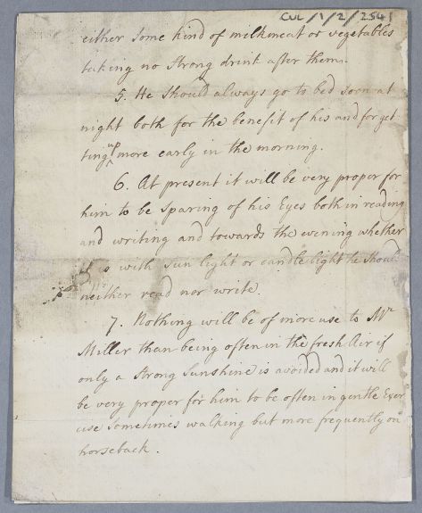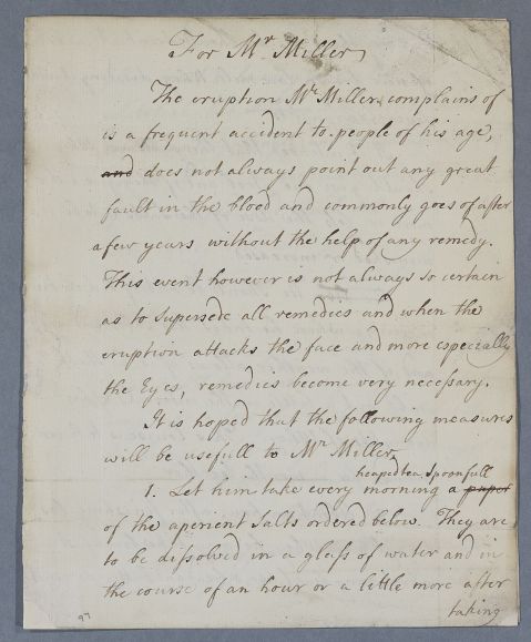 | Summary | Directions for Mr Miller. Enclosure missing: recipe for aperient salts. |