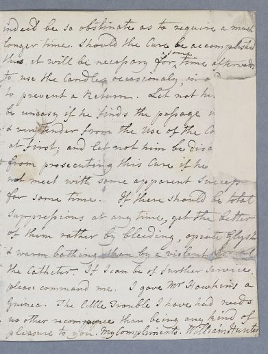 | Summary | Letter from William Hunter concerning the case of an unnamed male patient, a Scottish merchant whose case was sent to him by Cullen (Doc: 3632). Hunter includes the opinion of Mr Hawkins. Addressed to Cullen at Glasgow so an inferred date of early 1755 at the latest. The only other letter in the archive addressed to Cullen while still at Glasgow is Doc:733. |