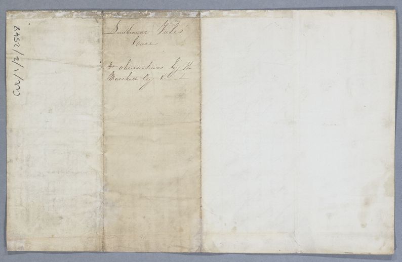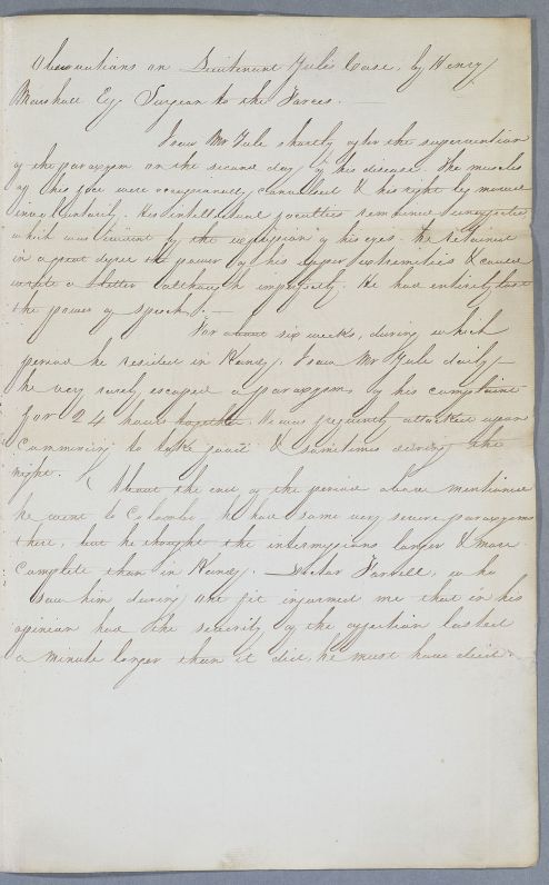 An orphaned, undated case-note describing Lieutenant Yule's case, annotated as being composed by Yule himself and by a Henry Marshall designated 'Surgeon to the Forces'. In unknown hand (copy?). Mentions Yule being in Columbo and Kandy, which strongly implies the patient is Major William Yule (1764-1839), of Dirleton, East Lothian who worked for the East India Company, which would date the document to after 1782 when he was a Lieutenant in the Bengal Army. After retiring from service in 1806 he eventually donated his collection of Oriental manuscripts to the British Museum (See DNB entry for his son, the geographer, Sir Henry Yule;). There is a DNB entry for a military surgeon Henry Marshall ( 1775-1851), but his dates are too late but this is possibly his father.