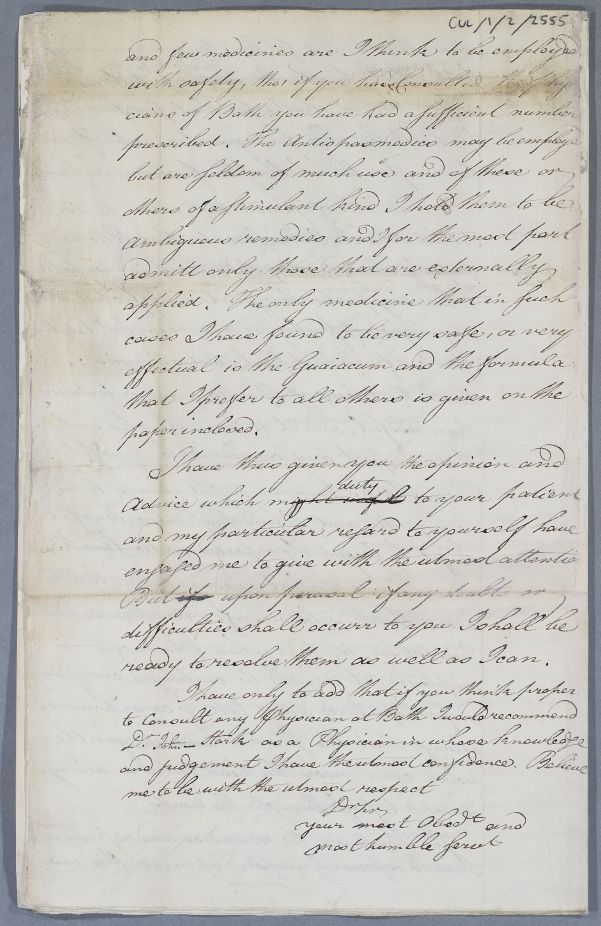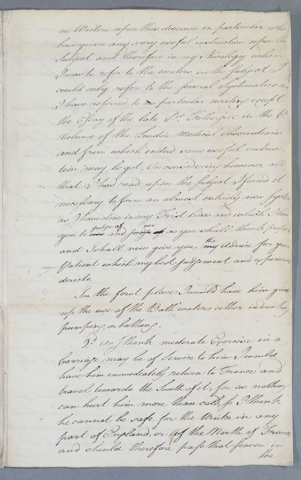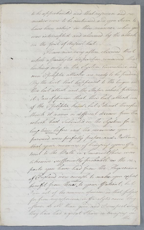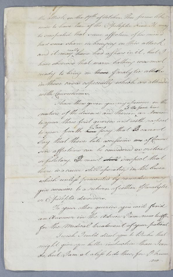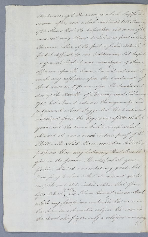 | Summary | Case of the unnamed male patient sent to Cullen by Dr Suë which Cullen diagnoses as epilepsy.. Suë had asked about books that he might refer to but Cullen writes 'I know no writers upon this disease in particular...except the essay of the late Dr Forthergill'. He prescribes a seven part regimen. |