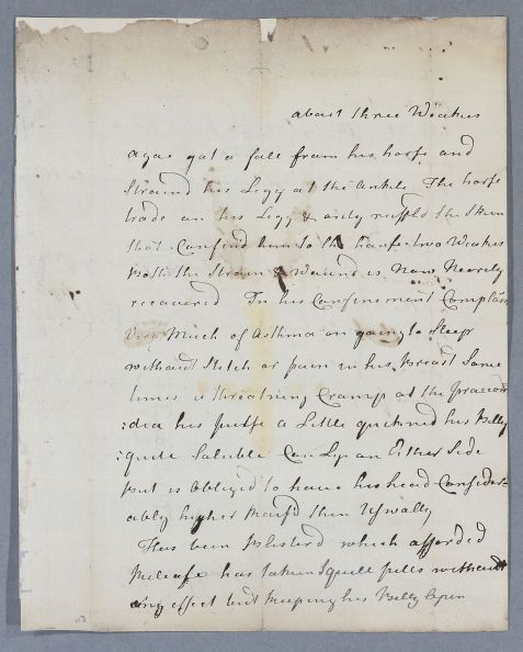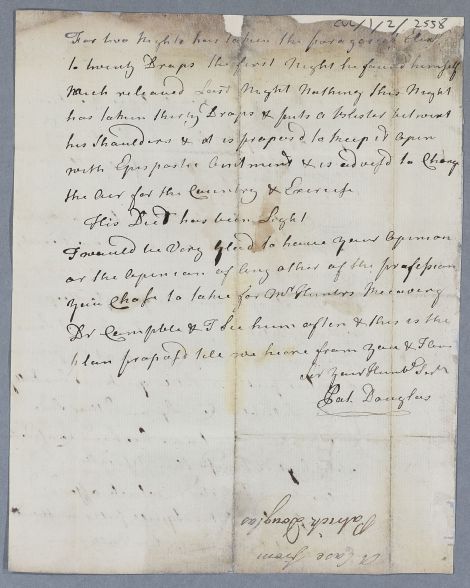 | Summary | Letter from Patrick Douglas concerning the case of a Mr Hunter who fell from a horse. Also mentions a Dr Campbell. |
