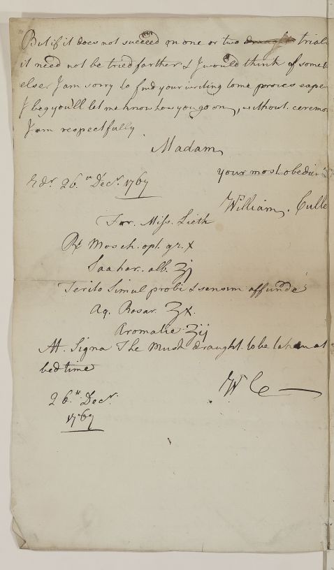 [ID:37] From: Dr William Cullen (Professor Cullen) / To: Mrs Lieth (Leith) / Regarding: Miss Lieth (Leith) (Patient) / 26 December 1767 / (Outgoing)