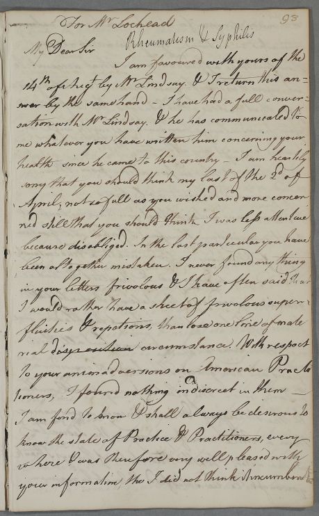 Case of Mr Henry Lochead who regularly travels between Virginia and Glasgow who has a genito-urinary complaint which may be venereal. |