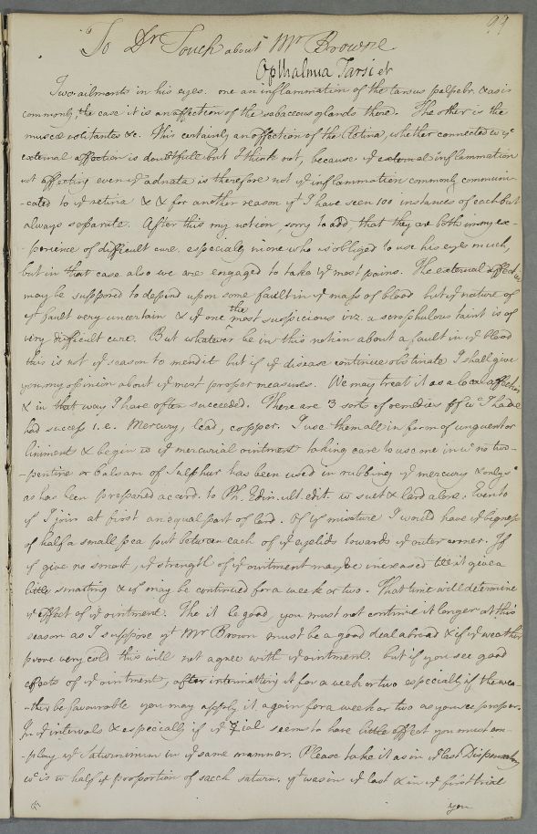 | Summary | Reply to Dr Touch about Mr Browne, regarding the ailment of his eyes. Date based on position on casebook. |