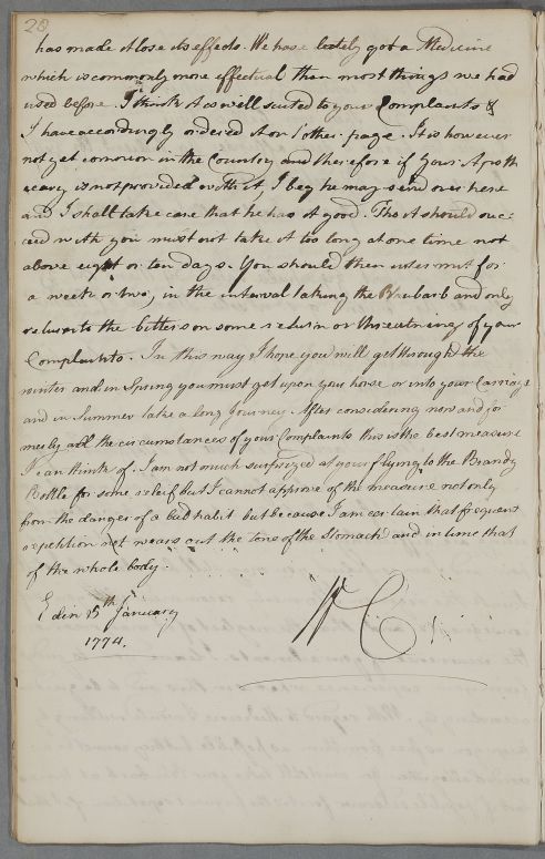 [ID:3753] From: Dr William Cullen (Professor Cullen) / To: Mr David Bethune (of Kilconquhar; of Balfour) / Regarding: Mr David Bethune (of Kilconquhar; of Balfour) (Patient) / 5 January 1774 / (Outgoing)