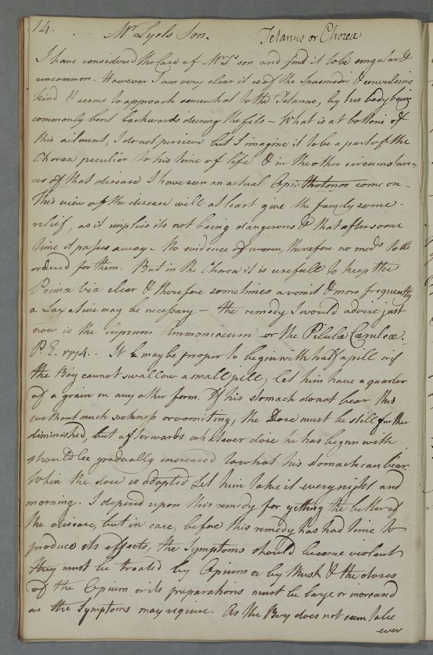 Case of the twelve year old son of Mr Lyel [Lyell] who suffers from convulsive fits. |