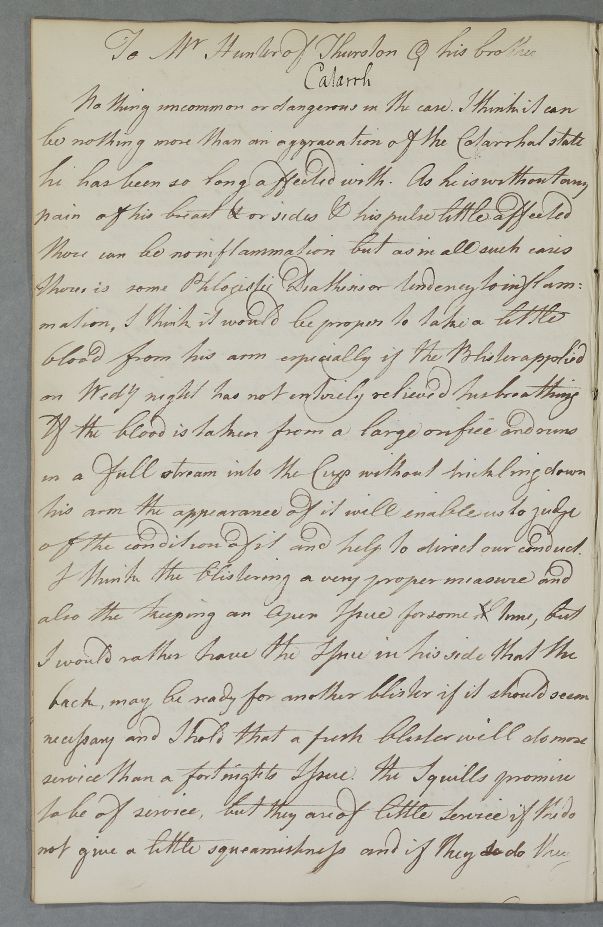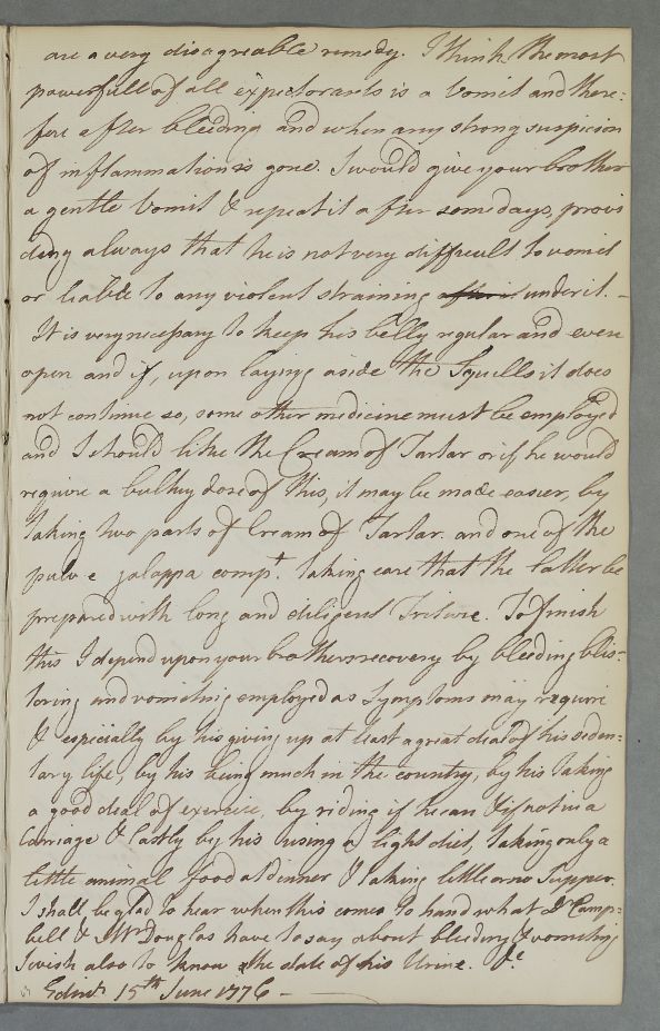[ID:3832] From: Dr William Cullen (Professor Cullen) / To: [ADDRESSEE UNKNOWN] / Regarding: Mr James Hunter (Patient) / 15 June 1776 / (Outgoing)