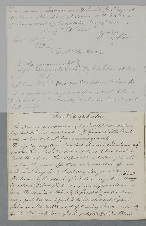 [ID:3850] From: Dr William Cullen (Professor Cullen) / To: Dr Hugh Marshall / Regarding: James McAlester (Jamie McAlaster, Mcallester) (Patient) / 30 June 1776 / (Outgoing)