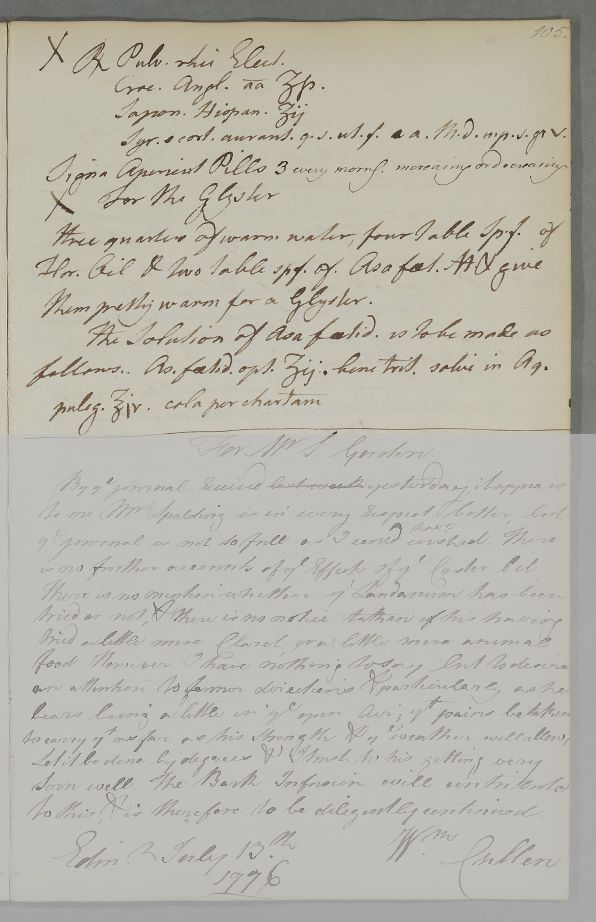 [ID:3862] From: Dr William Cullen (Professor Cullen) / To: Dr James Buckham / Regarding: Mrs Grace Thorp (Alder) (of Chillingham) (Patient) / 13? July 1776 / (Outgoing)