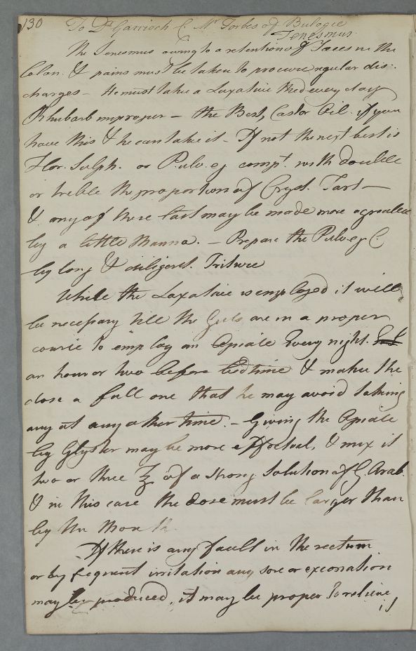 Case of Forbes of Bulogie who is prescribed castor oil to offset costiveness of taking laudanum. |