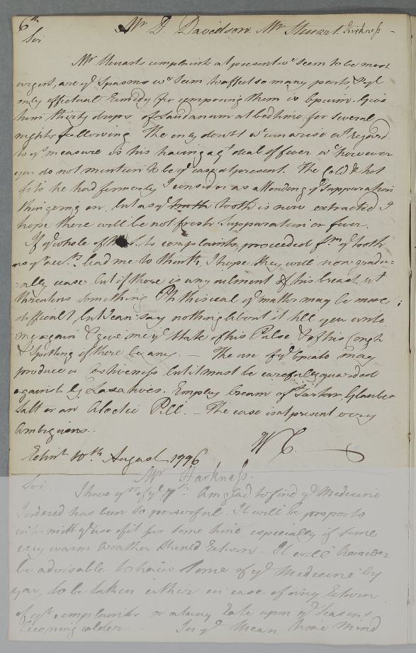 [ID:3897] From: Dr William Cullen (Professor Cullen) / To: Mr Davidson / Regarding: Mr Stewart (Steuart) (Patient) / 10 August 1776 / (Outgoing)