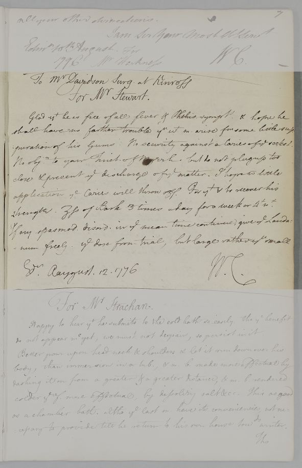 [ID:3899] From: Dr William Cullen (Professor Cullen) / To: Mr Davidson / Regarding: Mr Stewart (Steuart) (Patient) / 12 August 1776 / (Outgoing)
