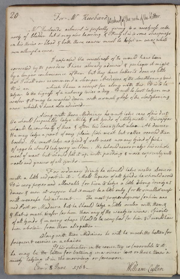 [ID:392] From: Dr William Cullen (Professor Cullen) / To: [ADDRESSEE UNKNOWN] / Regarding: Mr Husband (Patient) / 8 June 1768 / (Outgoing)