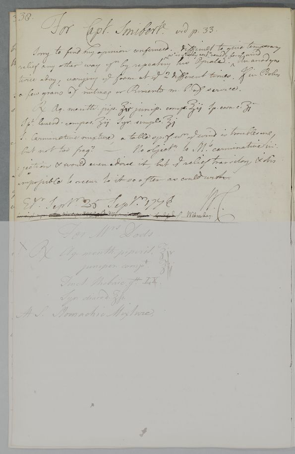 [ID:3926] From: Dr William Cullen (Professor Cullen) / To: Dr (Captain Smibert's physician) / Regarding: Captain Smibert (Patient) / 25 September 1776 / (Outgoing)