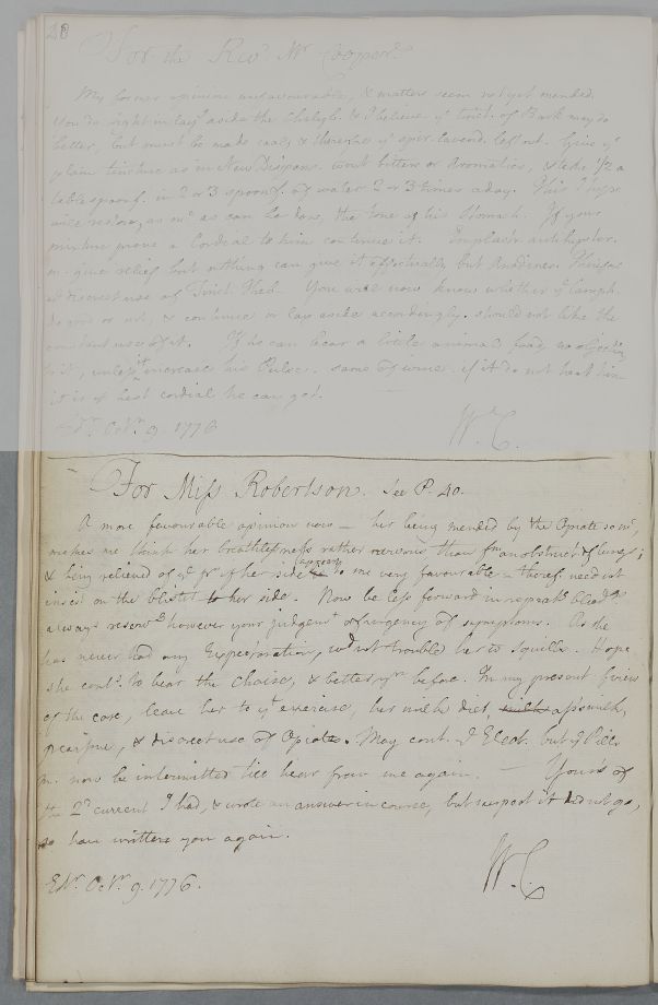 [ID:3937] From: Dr William Cullen (Professor Cullen) / To: [ADDRESSEE UNKNOWN] / Regarding: Miss B. Robertson (Patient) / 9 October 1776 / (Outgoing)