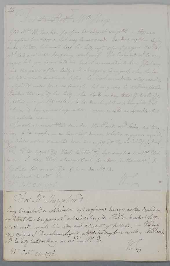 [ID:3943] From: Dr William Cullen (Professor Cullen) / To: [ADDRESSEE UNKNOWN] / Regarding: Mr Shepperd (Patient) / 24 October 1776 / (Outgoing)