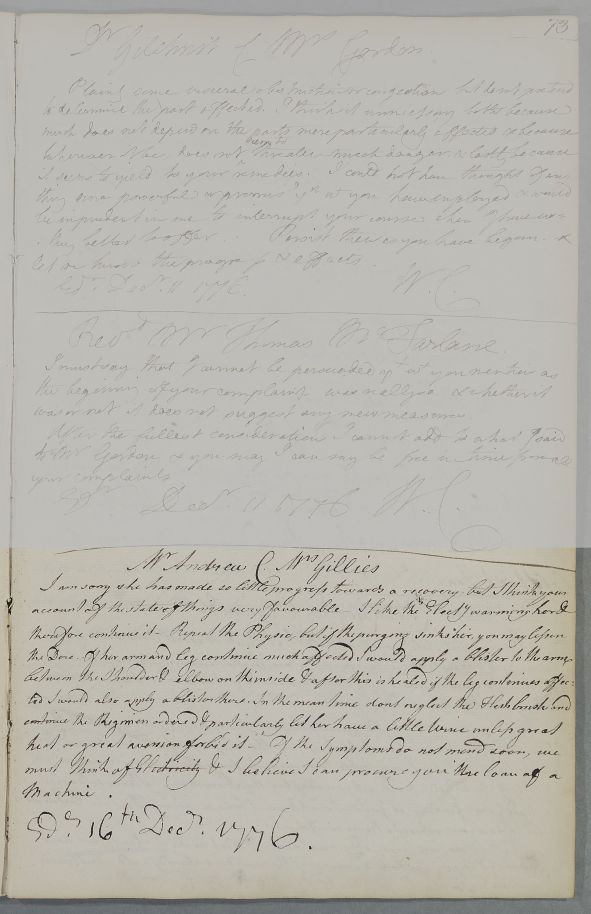 [ID:3967] From: Dr William Cullen (Professor Cullen) / To: Mr Andrew / Regarding: Mrs Gillies (Patient) / 16 December 1776 / (Outgoing)
