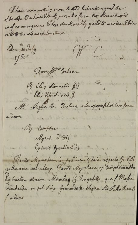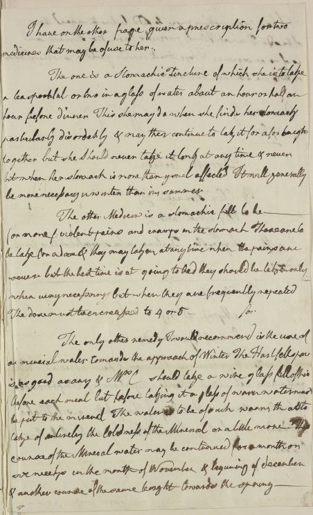| Summary | Reply 'For Mrs Cochran'. Much on diet and regimen with Stomachic medicines prescribed. |