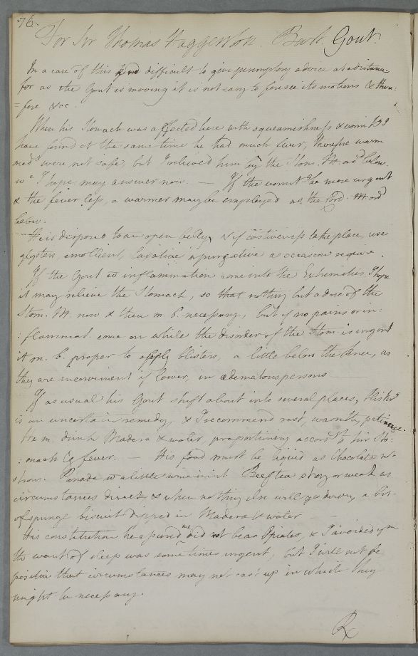 Case of Sir Thomas Haggerston who has gout and a weak stomach. |