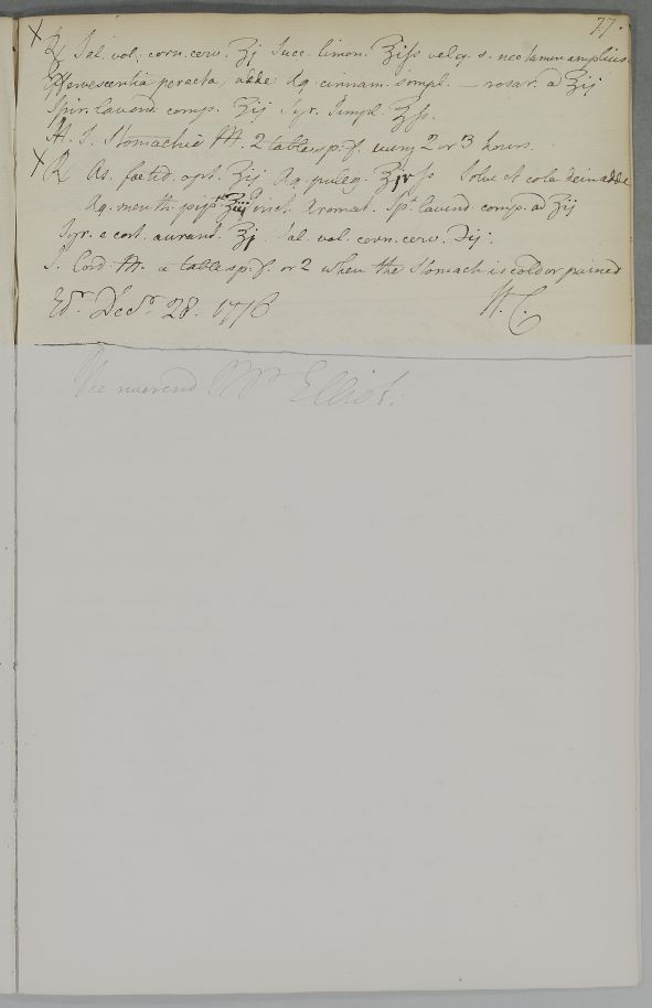 [ID:3972] From: Dr William Cullen (Professor Cullen) / To: [ADDRESSEE UNKNOWN] / Regarding: Sir Thomas Haggerston (Heaggerston, 4th Baronet) (Patient) / 28 December 1776 / (Outgoing)