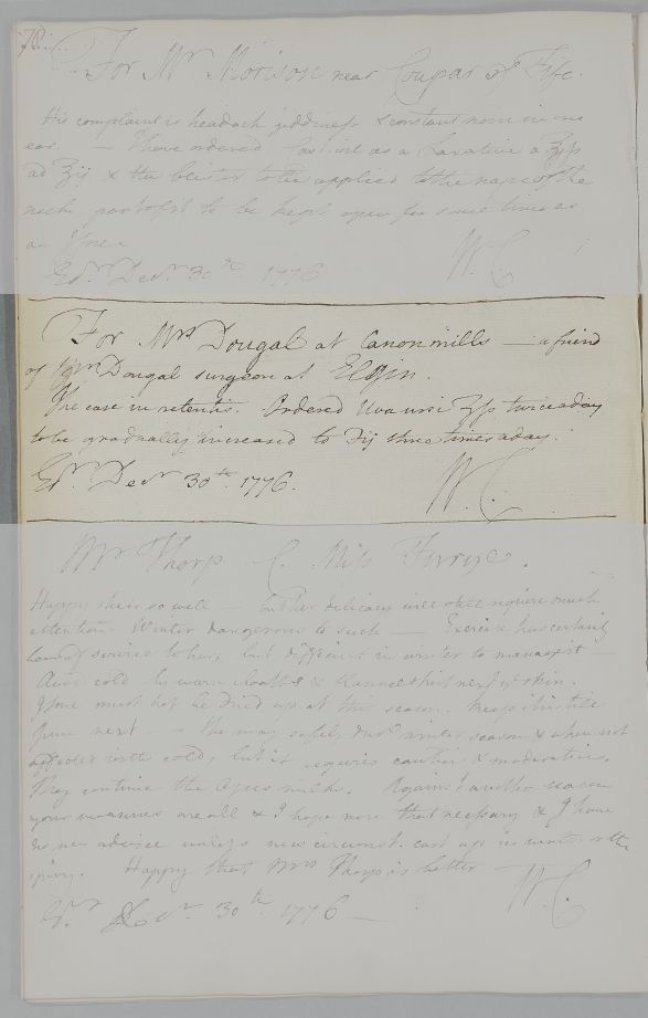 [ID:3975] From: Dr William Cullen (Professor Cullen) / To: [ADDRESSEE UNKNOWN] / Regarding: Mrs Dougal (Dougall) (Patient) / 30 December 1776 / (Outgoing)