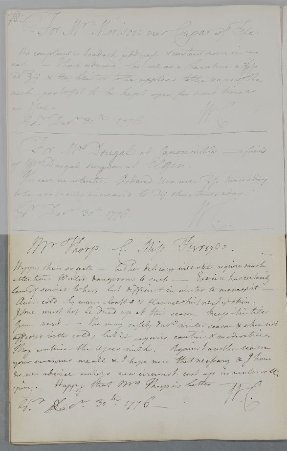 [ID:3976] From: Dr William Cullen (Professor Cullen) / To: Mr Thorp / Regarding: Miss Furie (Furye) (Patient) / 30 December 1776 / (Outgoing)