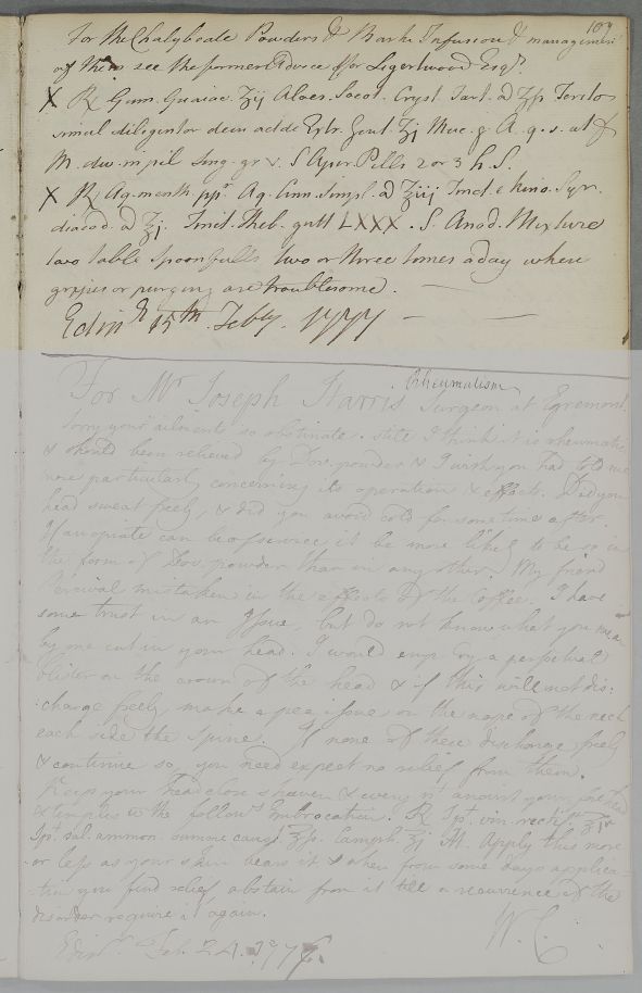 [ID:4000] From: Dr William Cullen (Professor Cullen) / To: (Mr Baillie's physician or surgeon) / Regarding: Mr Robert Ligertwood (Patient), Mr Baillie (Patient) / 15 February 1777 / (Outgoing)