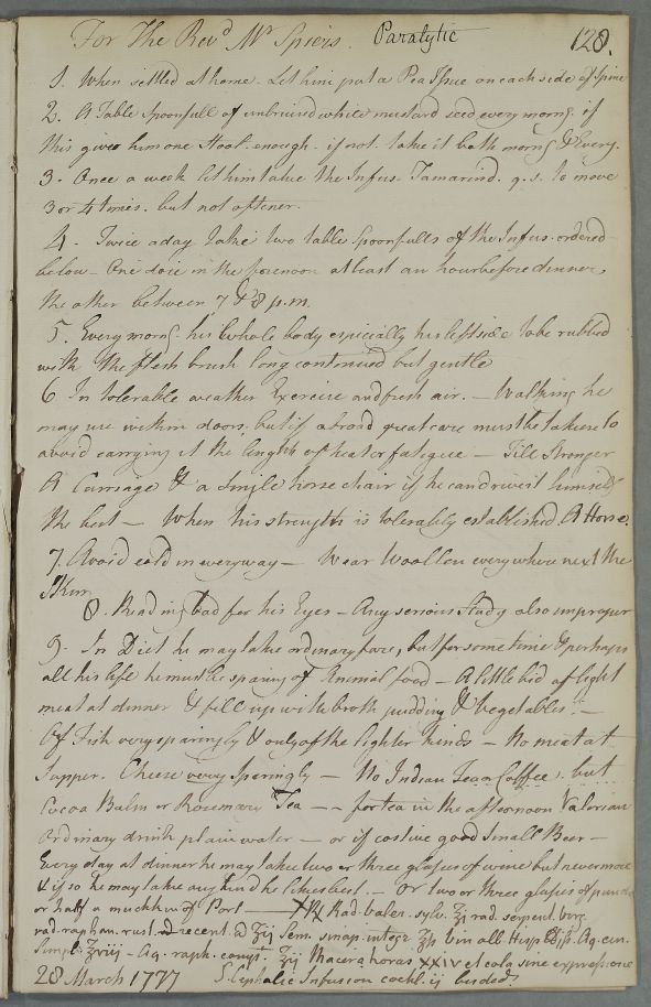 [ID:4025] From: Dr William Cullen (Professor Cullen) / To: Dr Alexander Wemyss (of Pitkenny) / Regarding: Reverend Alexander Spears (Spiers, Speirs; of Kirkcaldy) (Patient) / 28 March 1777 / (Outgoing)