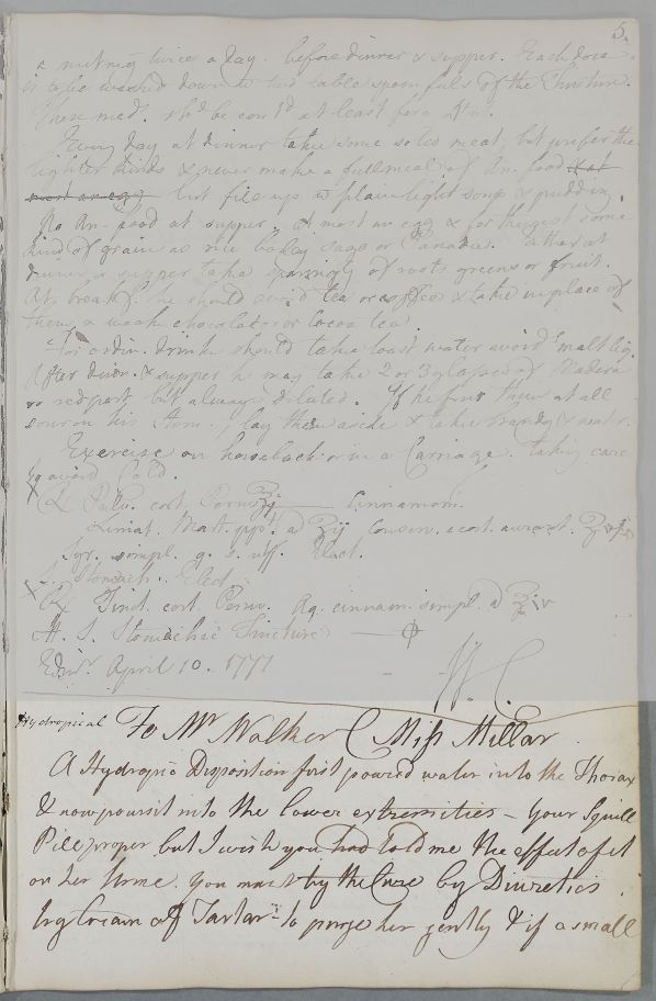 [ID:4037] From: Dr William Cullen (Professor Cullen) / To: Mr John Walker / Regarding: Miss Miller (Millar) (Patient) / 9 April 1777 / (Outgoing)